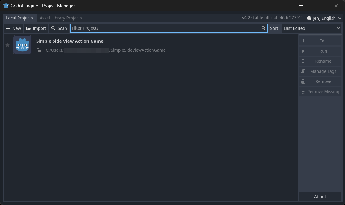 이후에는 [프로젝트 매니저]에서 해당 프로젝트를 선택하고 우측의 [Edit]버튼을 클릭하거나, 해당 프로젝트를 더블클릭하여 프로젝트를 열 수 있다.