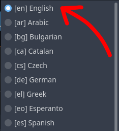 하지만 그 외에 '[ko] Korean'(한국어)등 다른 언어로 지정되어 있다면 스크린샷과 같이 영어로 바꿔준다.