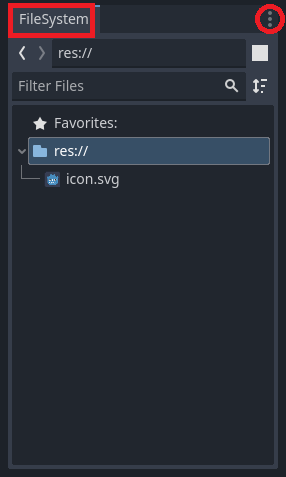 *주의사항* : 프로젝트 폴더에 들어있는 파일을 삭제하거나 그 경로를 바꾸는 작업(새로운 폴더를 만들어서 그 곳에 집어 넣는 등)은 에디터 밖에서 하면 안되고 반드시 이 [파일 시스템 독]에서 수행해야만 한다. 게임의 다른 요소들이 어떤 파일을 이용할 때는 그 파일의 경로를 참조하는데, 경로가 바뀌면 파일을 불러오지 못해 프로젝트가 고장나 열리지 않게 될 수도 있다. 하지만 [파일 시스템 독]에서 경로를 바꿀 때는 그렇게 망가지지 않도록 고도엔진이 자동으로 프로젝트를 수정해준다. 따라서 파일의 삭제나 경로의 수정은 반드시 에디터를 켜서 [파일 시스템 독]에서만 해야 한다.