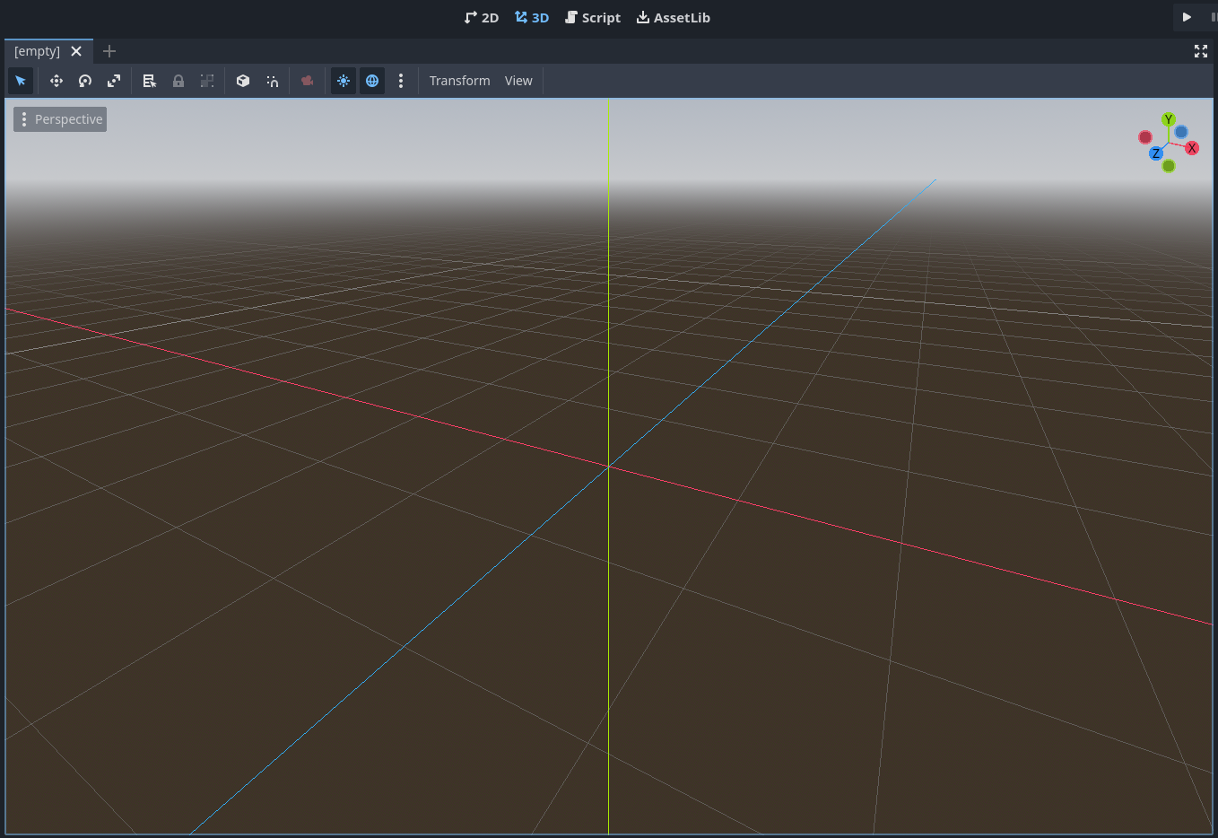 프로젝트를 처음 생성했을 때는 스크린샷과 같이 [3D 스크린]이 선택되어 있을 것이다.