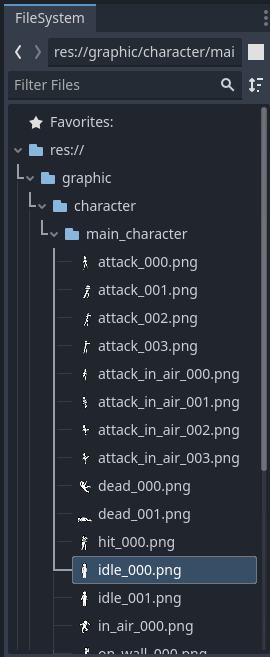 그 다음, 파일 시스템에서 다음 경로의 그래픽 파일을 Player의 texture속성에 할당해주자. res://graphic/character/main_character/idle_000.png