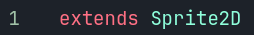 이 스크립트가 Sprite2D를 기반으로 작동한다(즉 Sprite2D를 상속한다)는 의미이다. 아까 우리가 스크립트 생성창에서 Inherits를 Sprite2D로 지정한 것이 반영된 것이다. 만일 이 스크립트가 Sprite2D가 아닌 다른 노드를 상속하게 수정하고 싶다면 이 부분에서 ‘Sprite2D’를 지우고 원하는 것을 입력하면 된다.