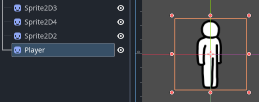 스크립트를 제대로 부착했다면 메인 스크린을 2D 스크린으로 전환하고 Player노드를 보기 좋은 위치에 옮겨 놓자.
