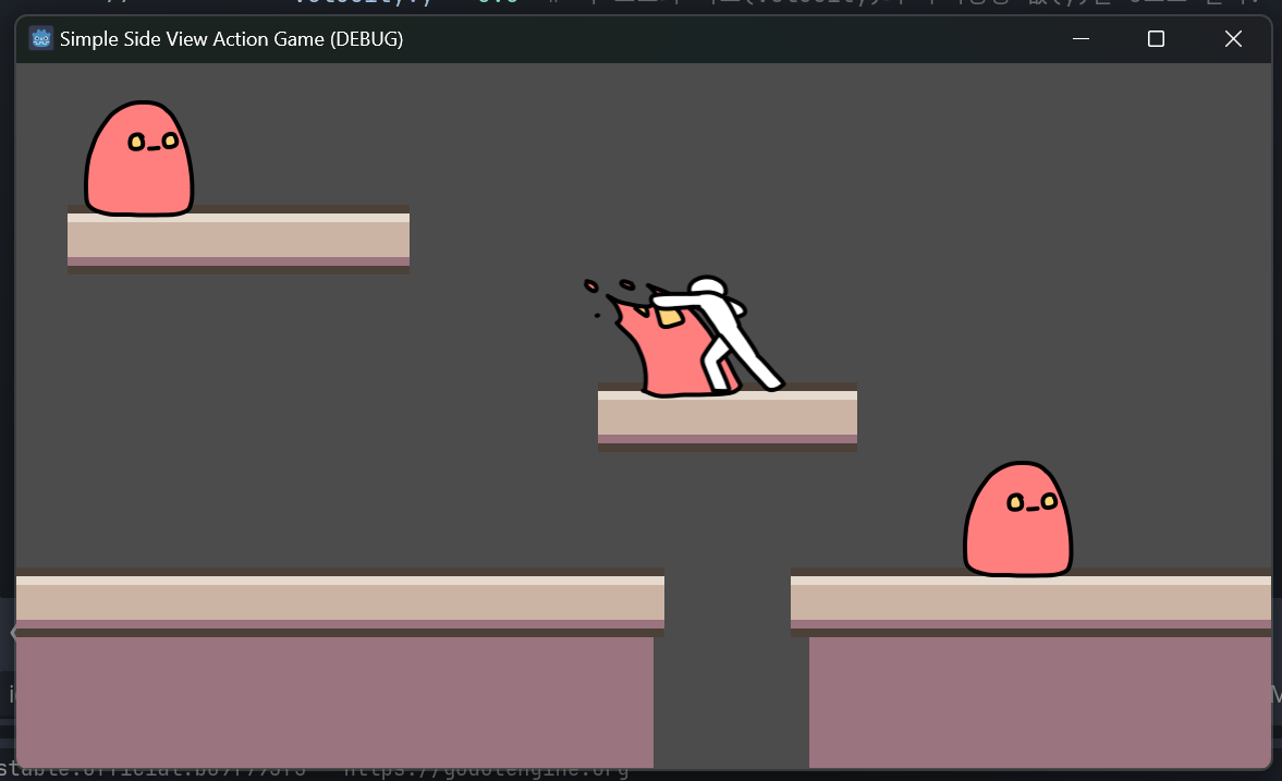 이제 게임을 실행하고 적 캐릭터한테 다가가 5번 공격을 받으면 죽어버리는 주인공을 볼 수 있다.
