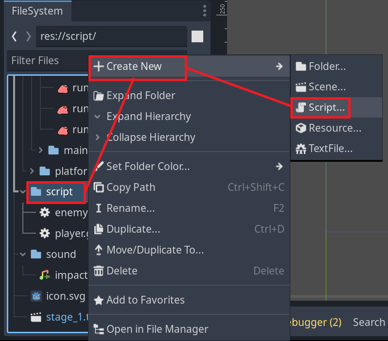 이제 버튼이 작동할 수 있도록 스크립트를 작성할 시간이다. script폴더를 우클릭, [Create New]-[Script]메뉴를 선택하여 새로운 스크립트 파일을 생성해주자.