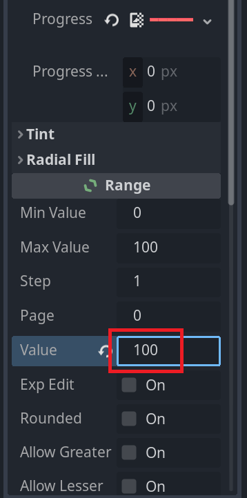 value속성을 max_value속성과 같게 100으로 설정해준다.