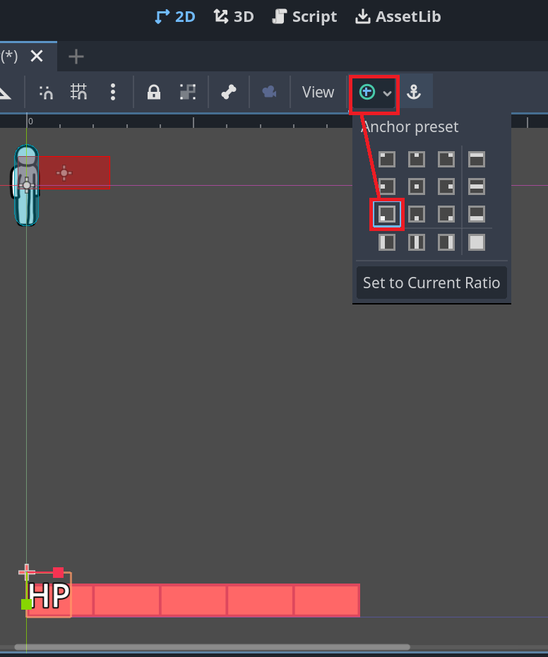 글자에 대한 설정을 끝마쳤으면 HPLabel의 Anchor preset을 HPGauge와 같게 설정해준다.