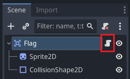 스크립트의 생성을 마쳤다면 goal.gd스크립트를 드래그해서 깃발 씬의 최상위 노드에 붙여주자.