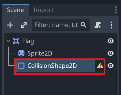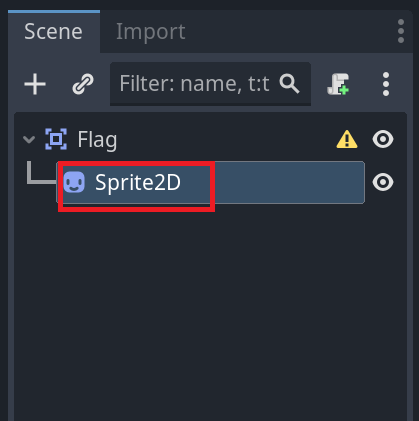 flag씬에 Sprite2D를 생성하고 texture속성에 flag.png이미지 파일을 할당해준다.