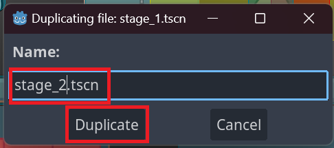 새로운 스테이지 씬의 이름을 입력하자. stage_2로 하겠다.